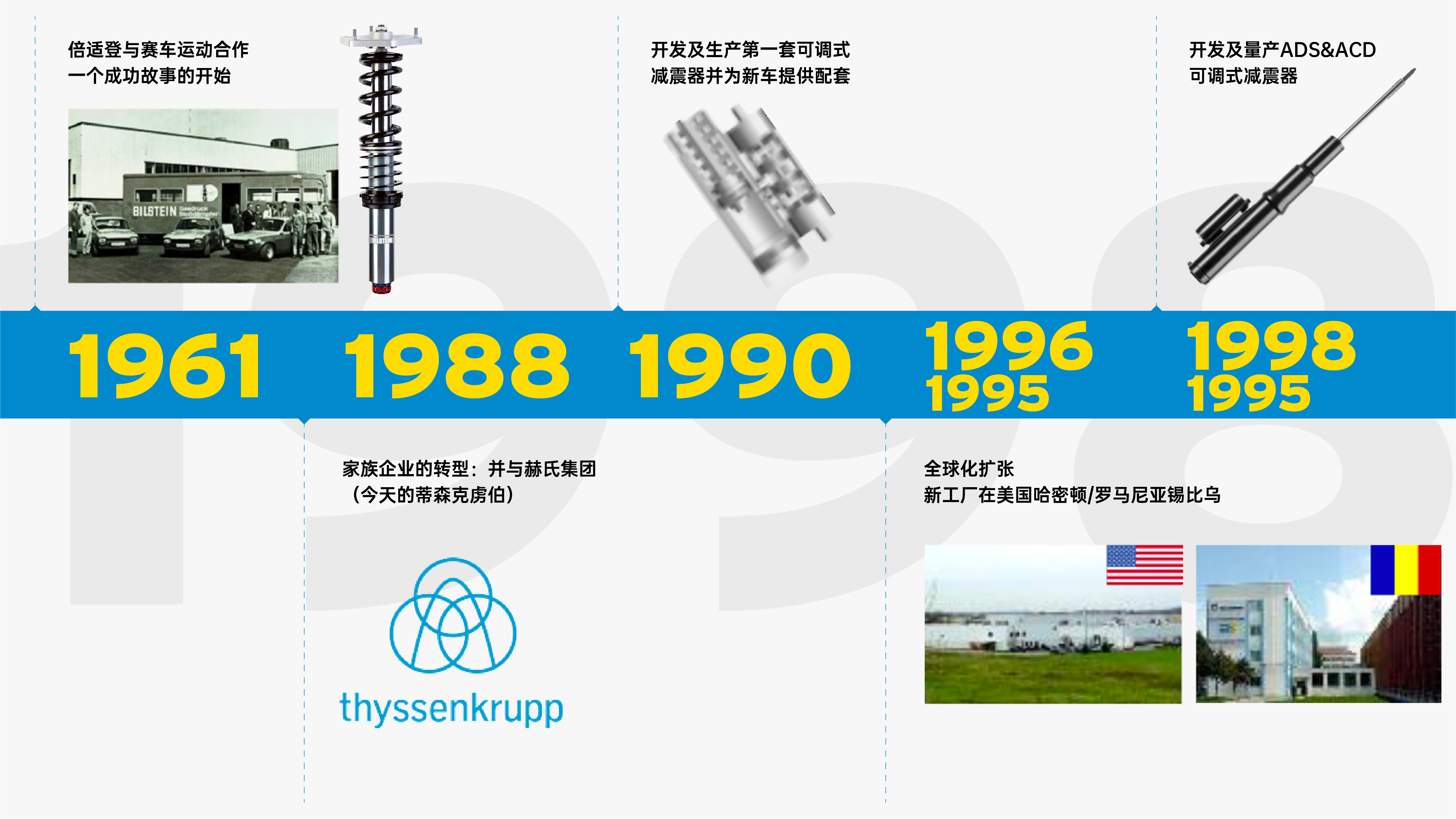 世界领先的汽车品牌之所以信赖BILSTIEN,是因为我们的技术和质量确立了最高标准。每一步发展都是一个新的里程碑,代表着BILSTEIN的开拓精神,我们制造的每一个产品都蕴含BILSTEIN的精华。
