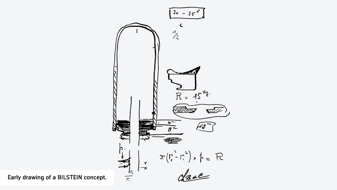 1954年, BILSTEIN的工程师利用振动领域专家的一项重要发现,研发出了世界上第一支单筒气压式减震器,其可消除传统伸缩式减震器的物理缺陷,减轻自重的同时能够被安装在任意位置,这项发明为汽车工业带来了重大变革。